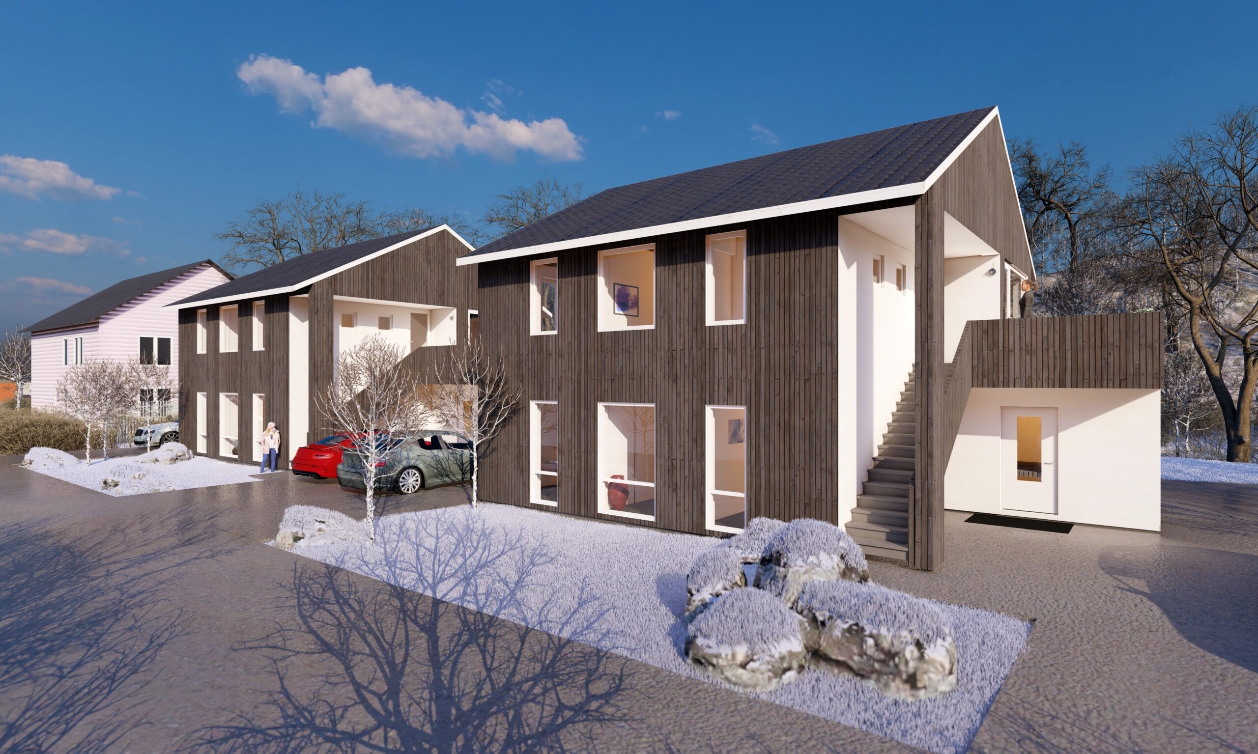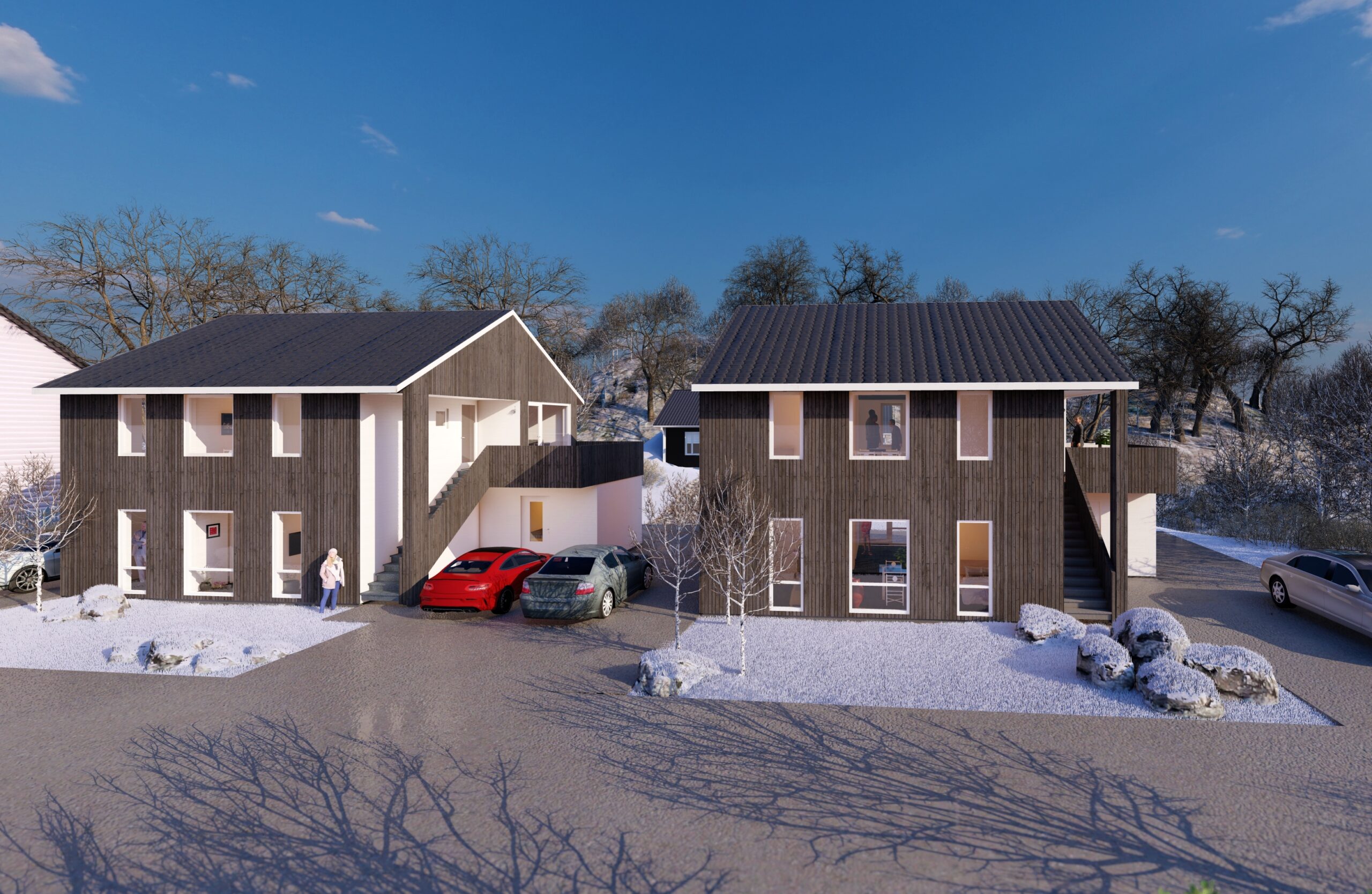 TILPASNINGSPROSJEKT I EKSISTERENDE BOLIGOMRÅDE MED 2-ETASJERS HUS OG SKRÅ TAK.